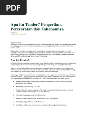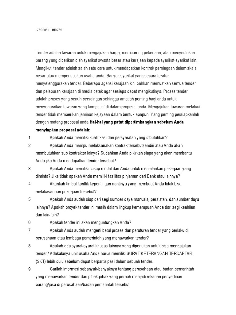 Tender Adalah Pencarian Mitra Dalam Proyek Definisi Manfaat Tender